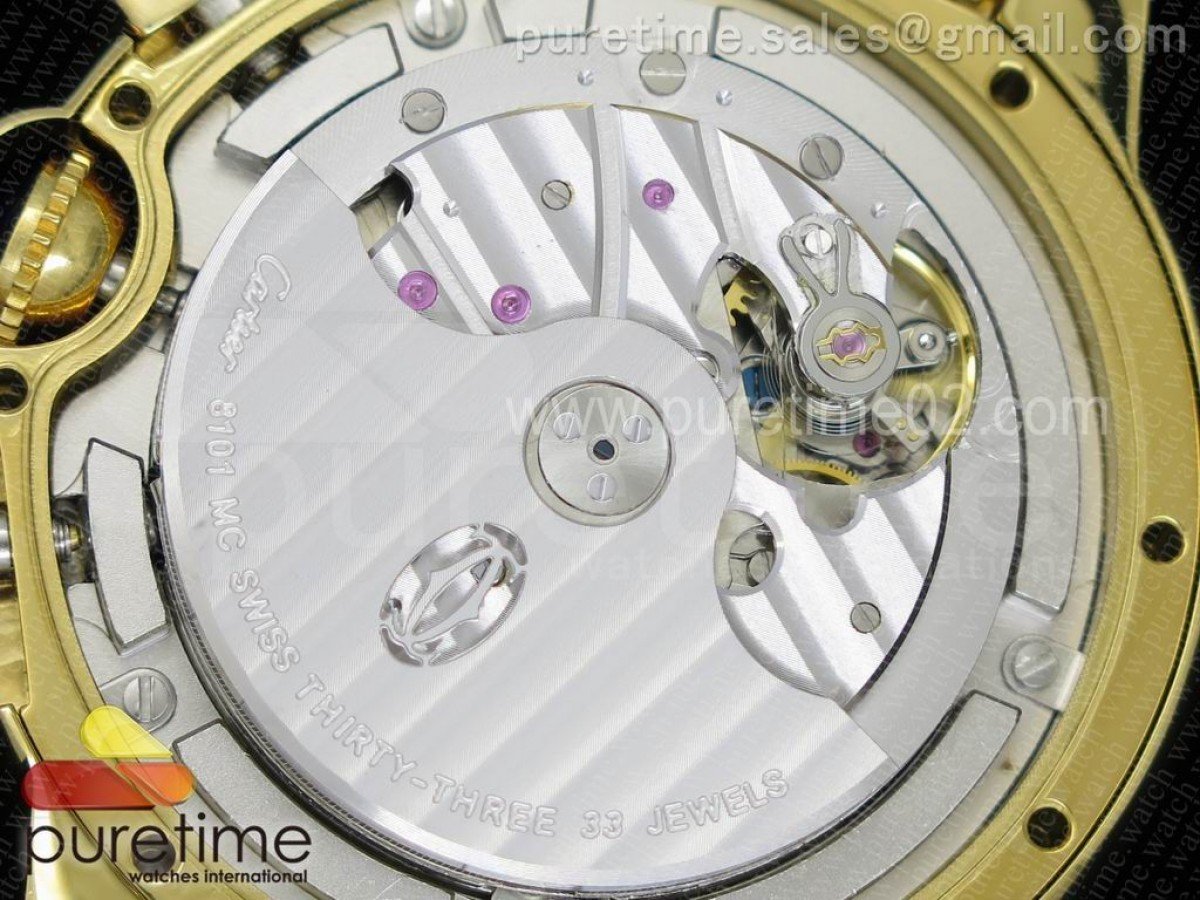 Movement 7750 automatic chronograph movement at 28800vph decorated to Cartier Cal.8101 movement