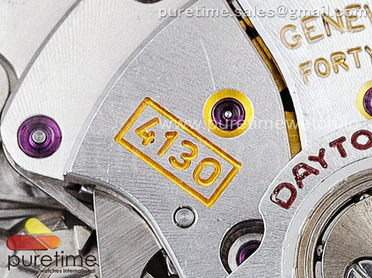 Movement Super Clone4130 movement 28800vph, 1:1 replicated from the genuine movement, fully functional. Blue spring same as genuiine.