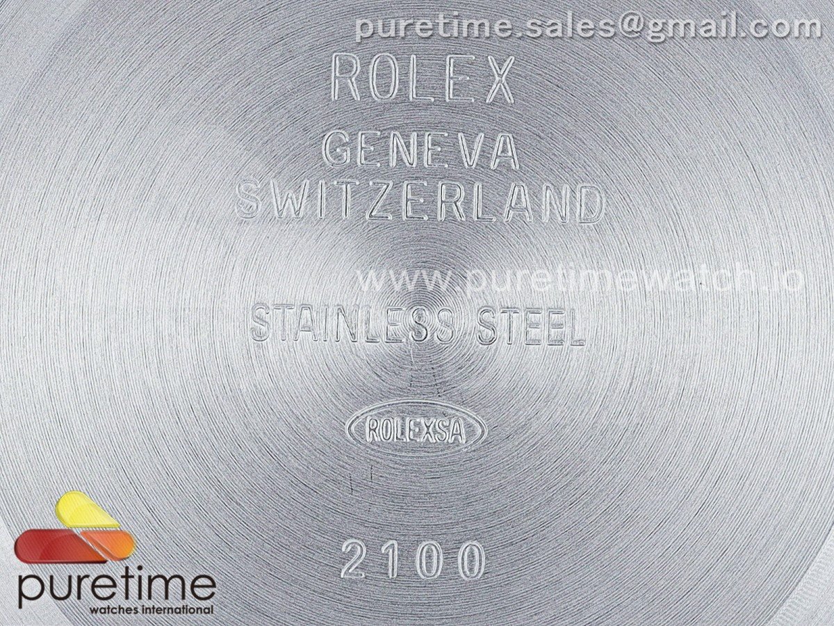 Crystal Scratch-proof sapphire crystal with semi-invisible crown etched at 6:00 position of the crystal (same as genuine and this is the first of its kind, one revolutionary breakthrough of the Rolex replicas)