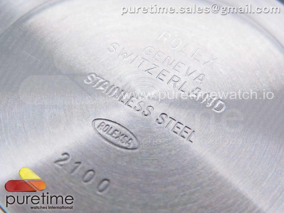 Crystal Scratch-proof sapphire crystal with semi-invisible crown etched at 6:00 position of the crystal (same as genuine and this is the first of its kind, one revolutionary breakthrough of the Rolex replicas)
