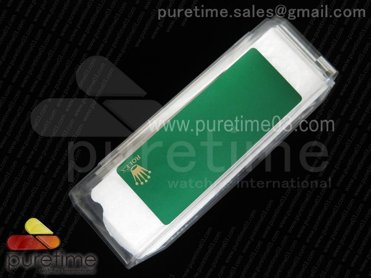 Crystal Scratch-proof sapphire crystal with semi-invisible crown etched at 6:00 position of the crystal (same as genuine and this is the first of its kind, one revolutionary breakthrough of the Rolex replicas)