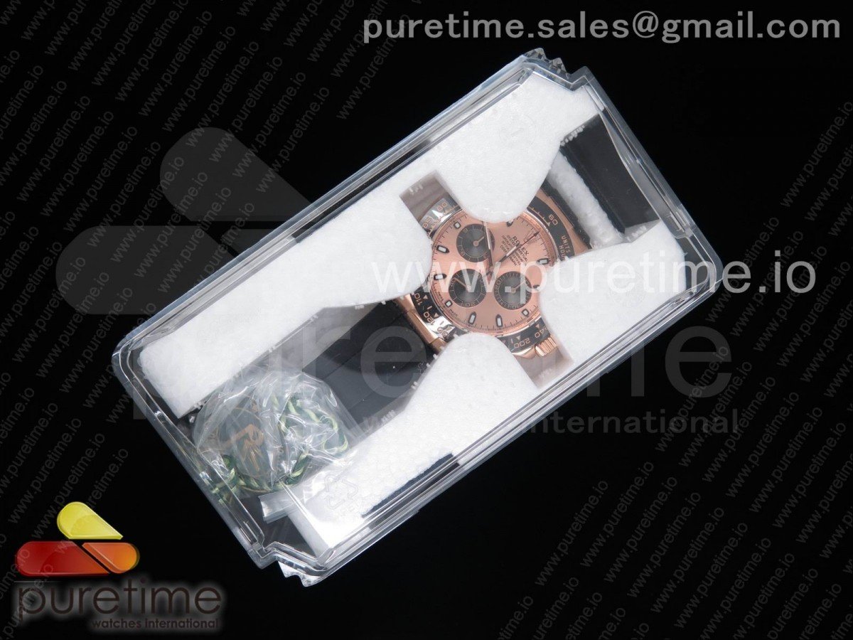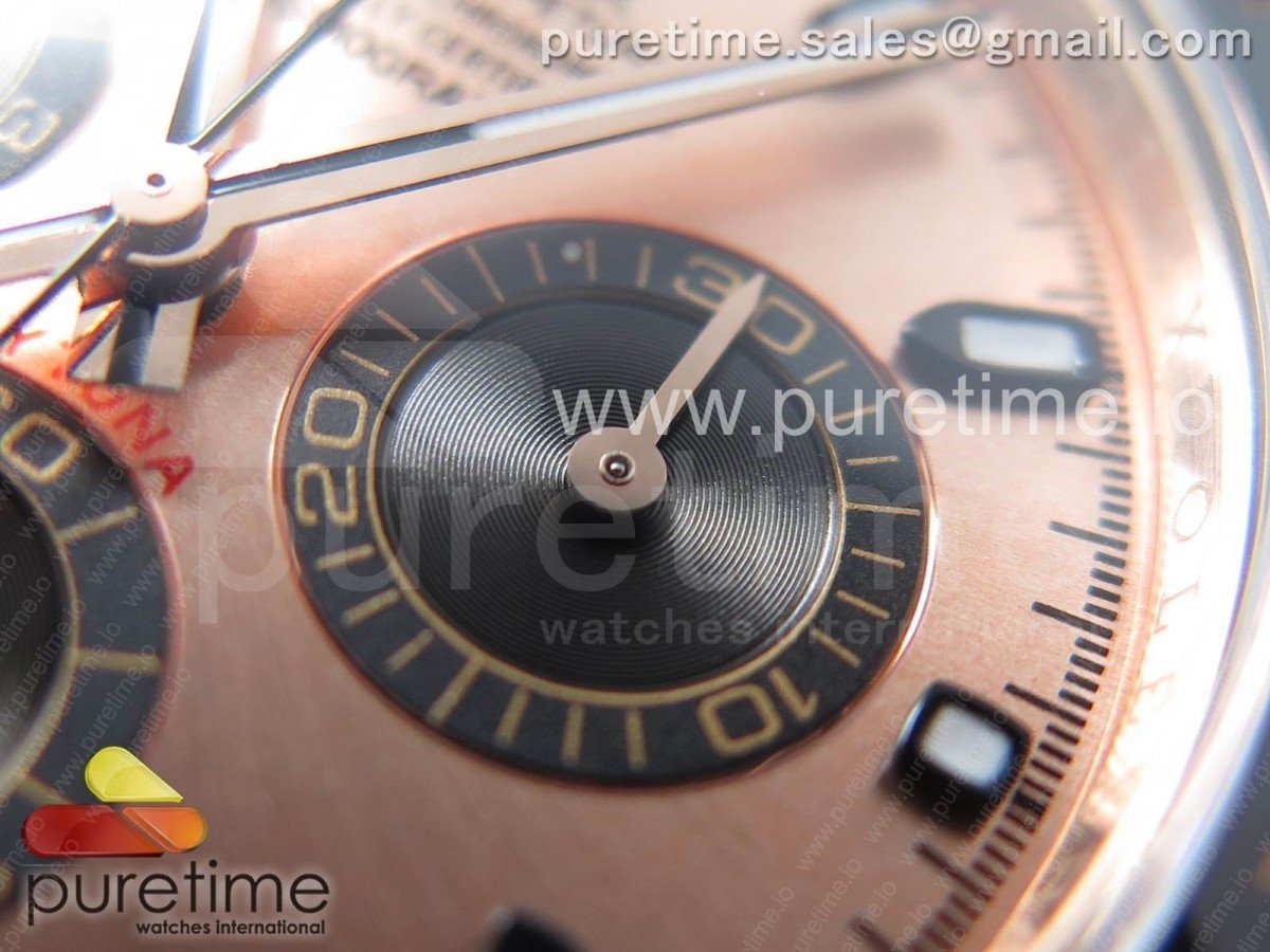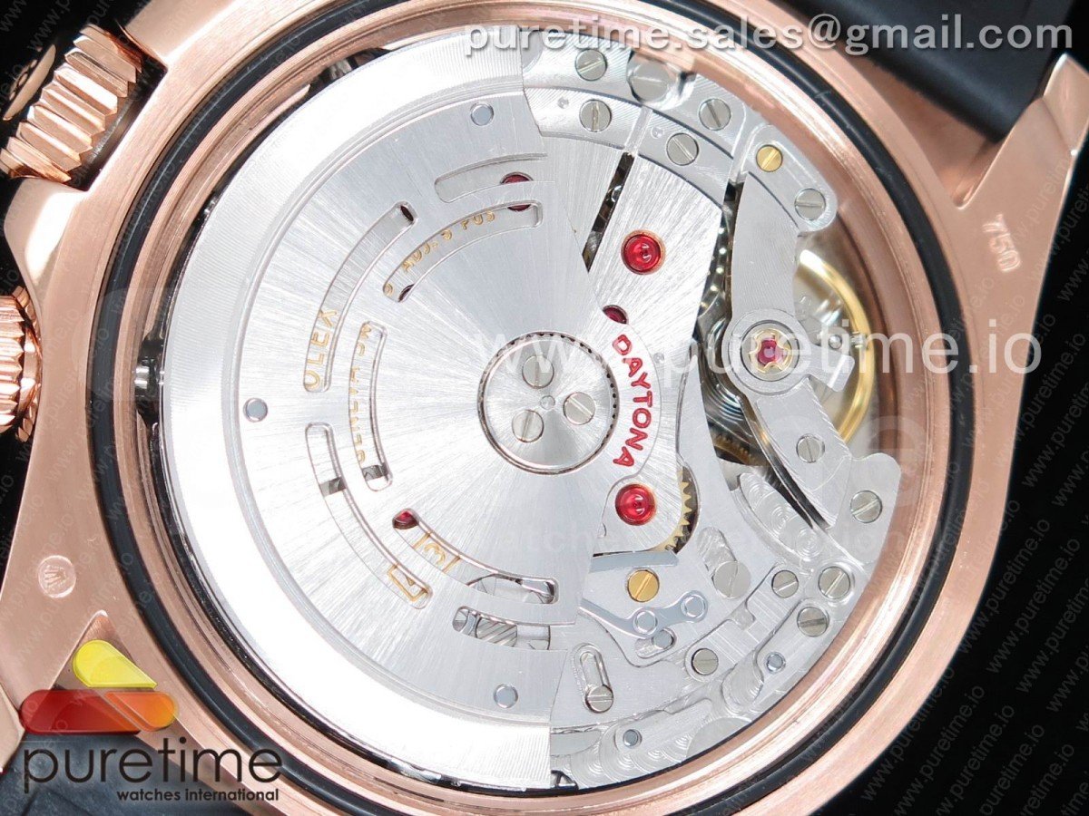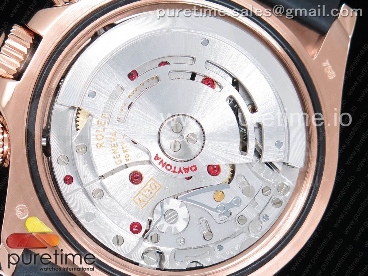Movement New Slim Chronograph movement running seconds at 6 position; Decoration: Platinum plated movement plate and rotor which are made according to the genuine movement, the best Rolex 4130 Movement Clone at the moment.