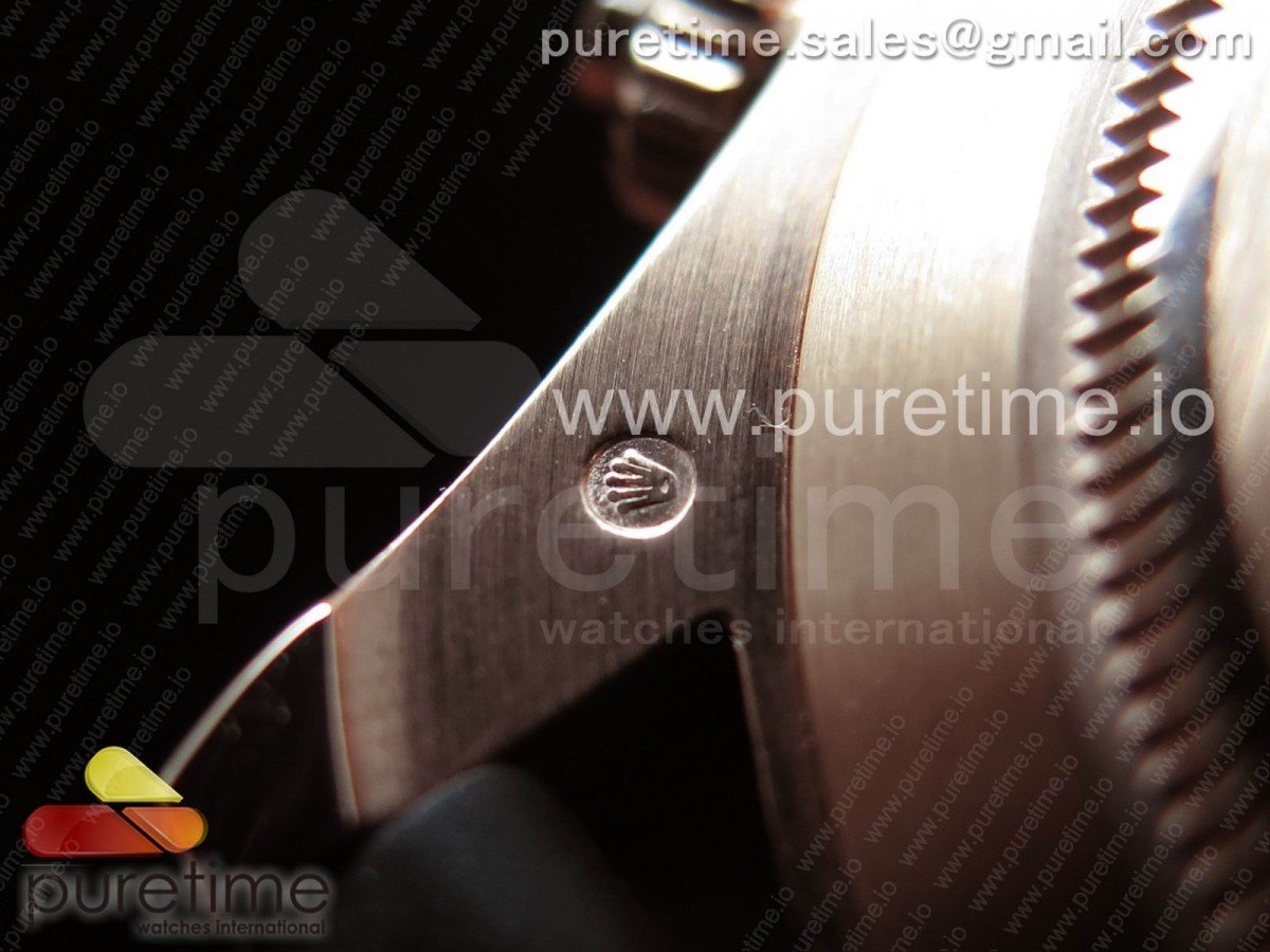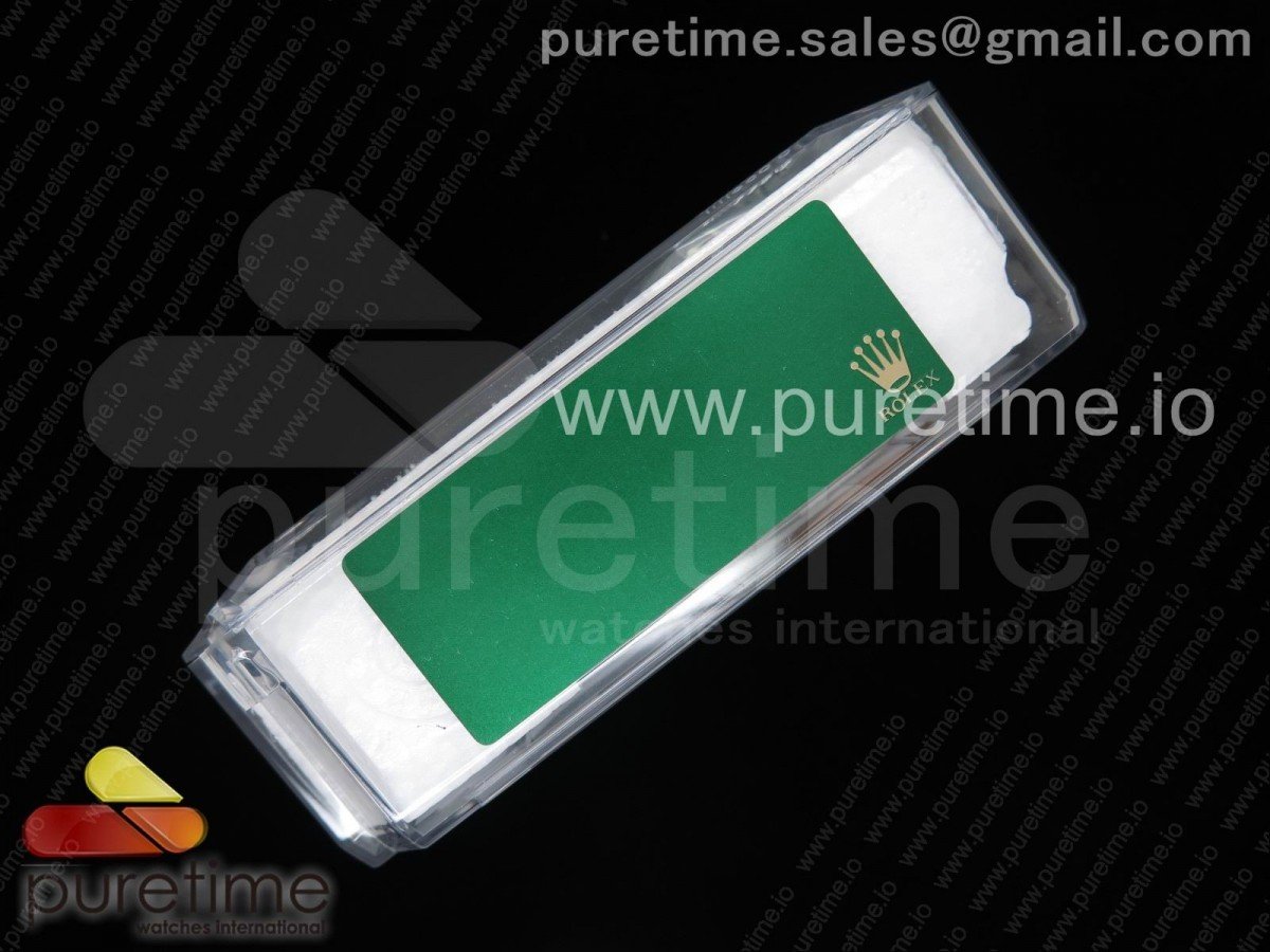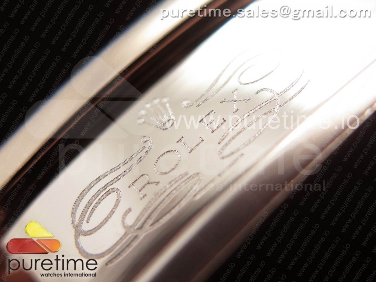 Crystal Scratch-proof sapphire crystal with semi-invisible crown etched at 6:00 position of the crystal (same as genuine and this is the first of its kind, one revolutionary breakthrough of the Rolex replicas)