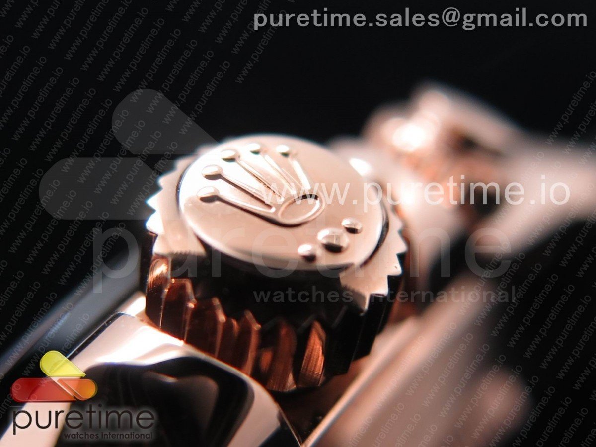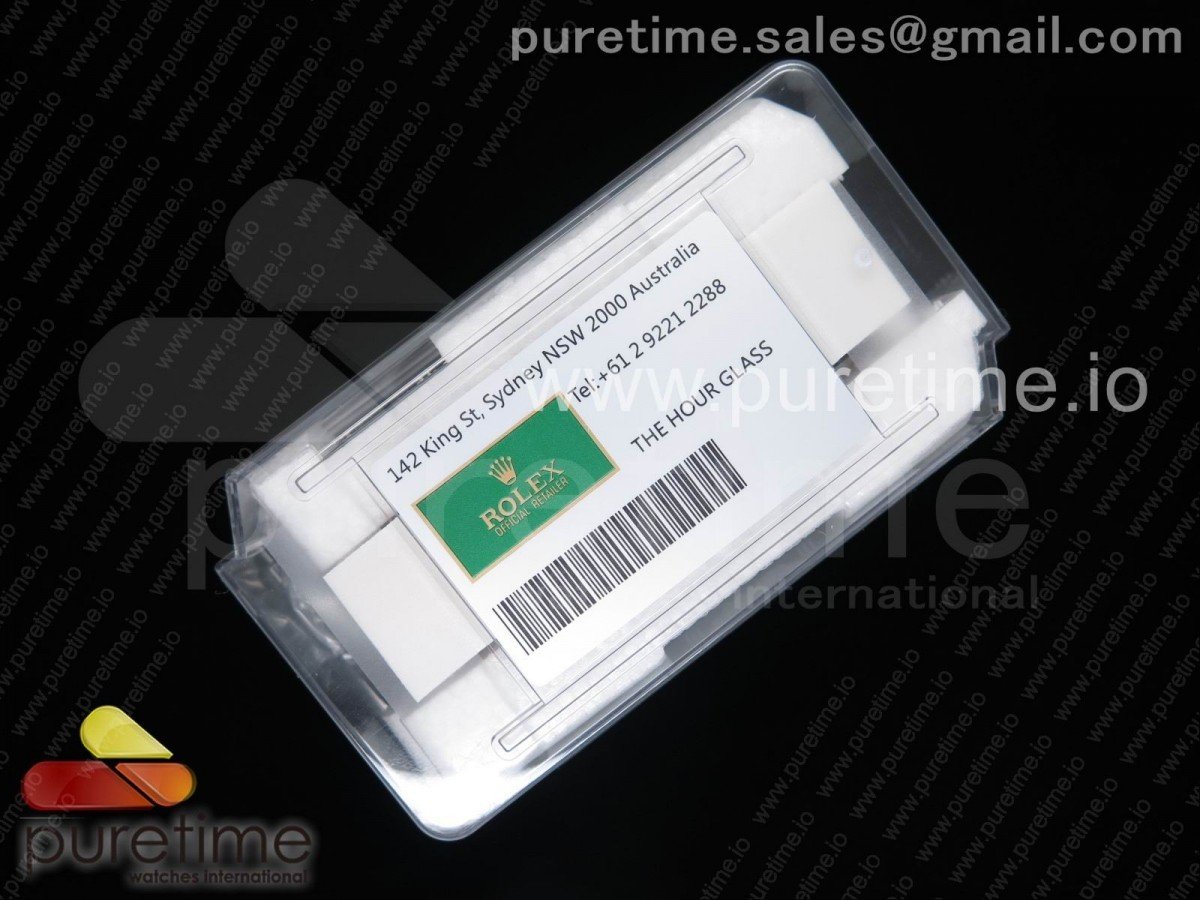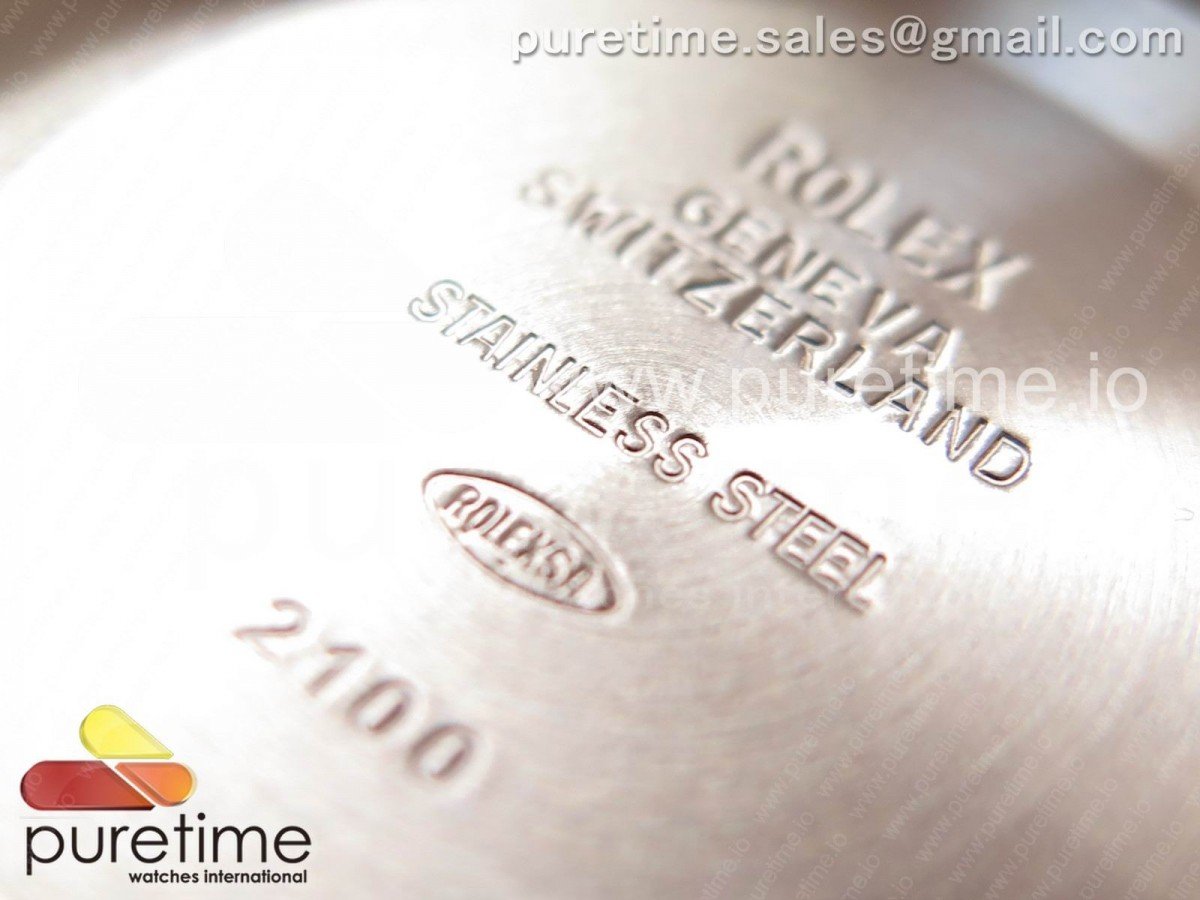 Crystal Scratch-proof sapphire crystal with semi-invisible crown etched at 6:00 position of the crystal (same as genuine and this is the first of its kind, one revolutionary breakthrough of the Rolex replicas)