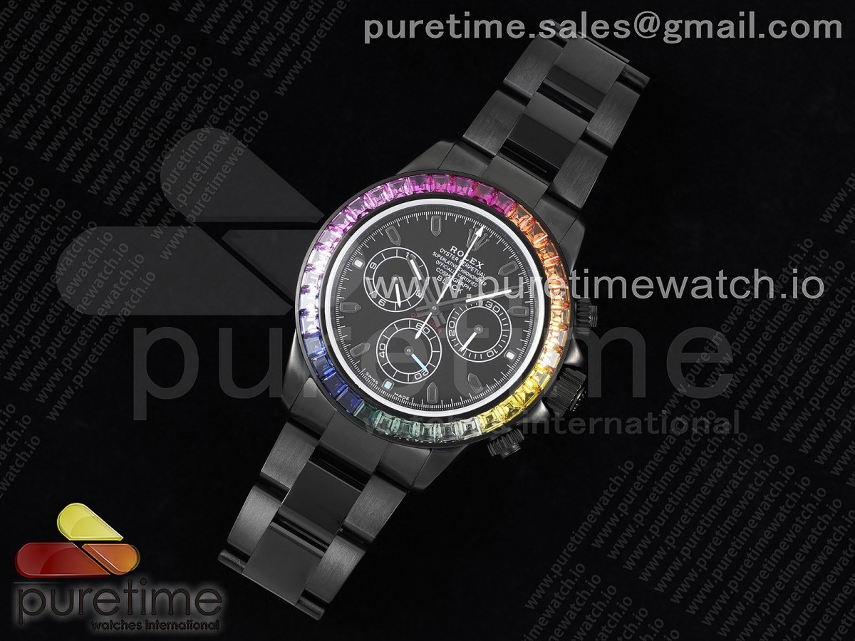 Daytona All Black PVD TWF Best Edition Rainbow Diamonds Bezel Black Dial on PVD Bracelet SA4130