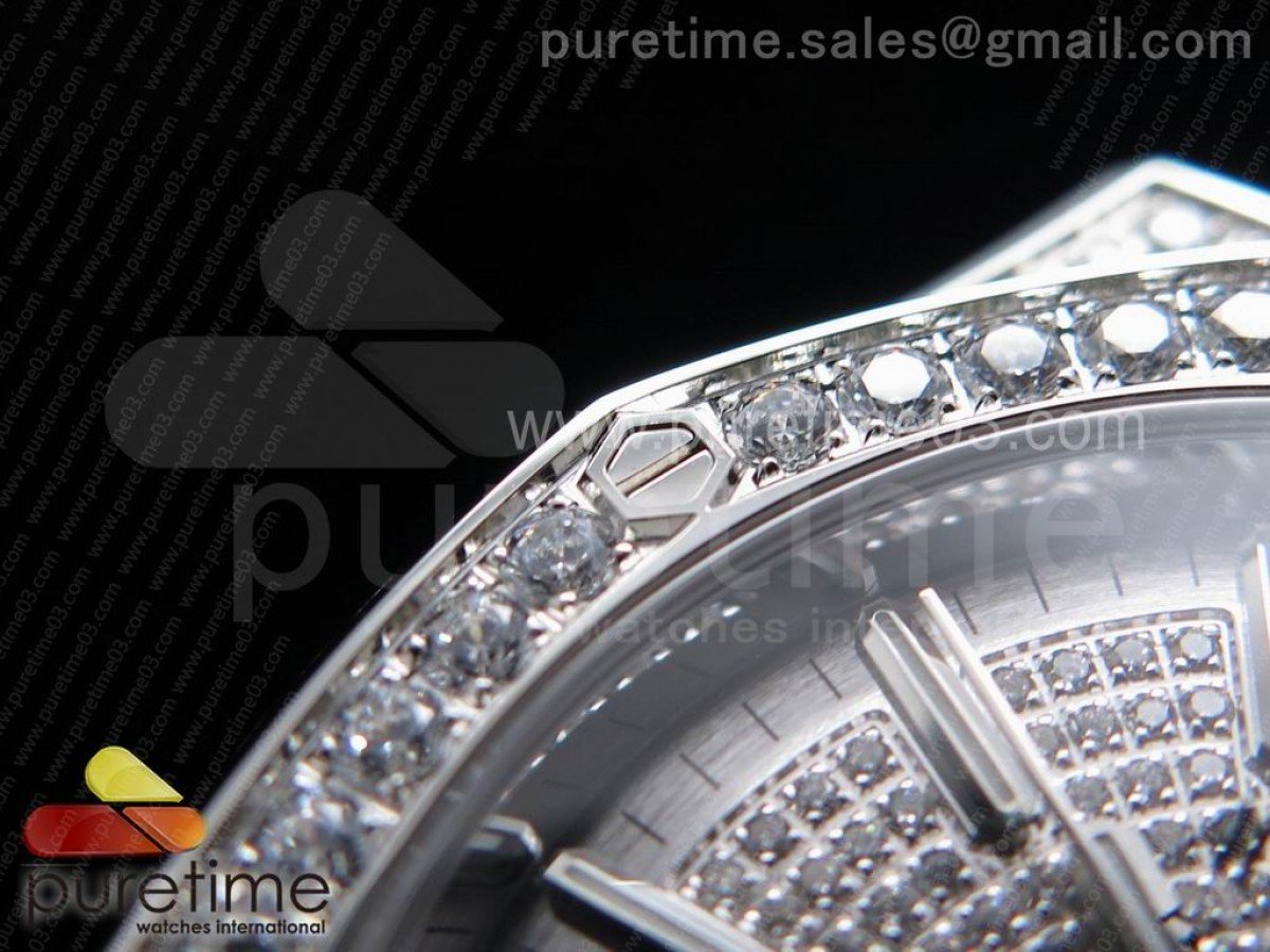 Bezel Full paved diamonds/polished stainless steel bezel (same construction as genuine) with recessed bezel screws as per genuine