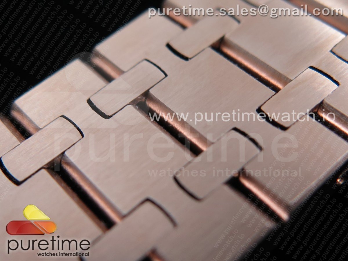 Bezel Updated 18K rose gold plated brushed/polished stainless steel bezel (same brushed texture and construction as genuine) with recessed bezel screws as per genuine