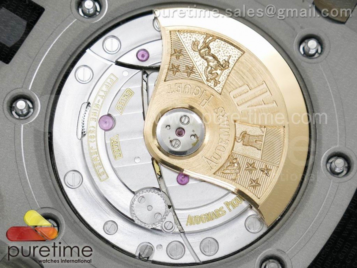 Movement Base Movement: 7750 automatic chronograph movement at 28800vph; Decoration: Platinum plated movement plate and rotor which are made according to the genuine movement, the best looking AP Calibre 3126 Movement Clone at the moment.