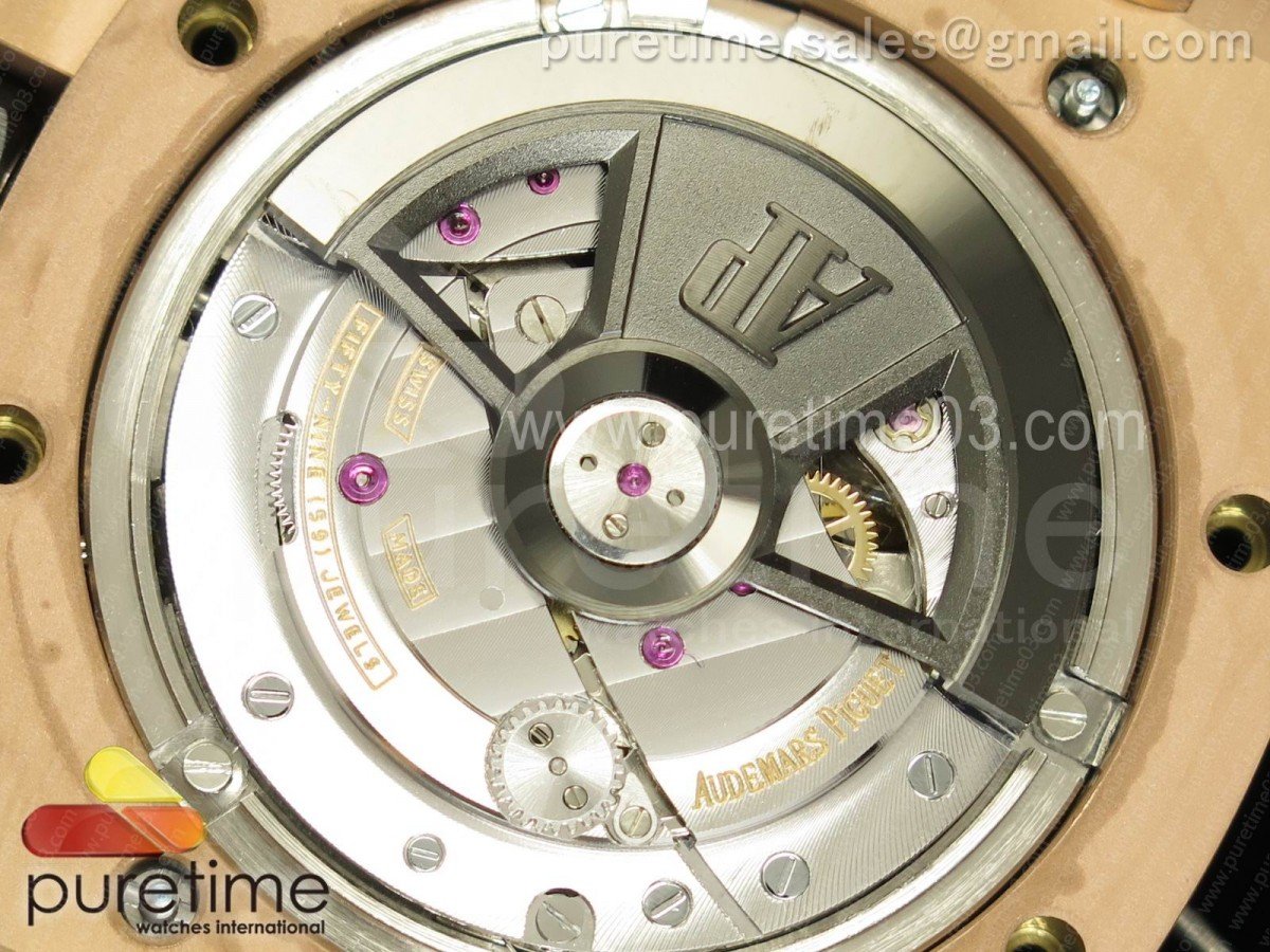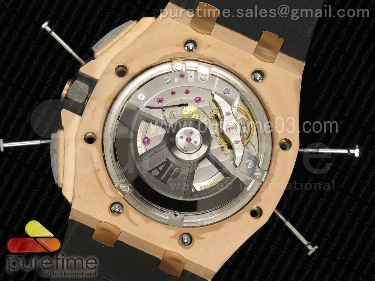 Movement Base Movement: 7750 automatic chronograph movement at 28800vph; Decoration: Platinum plated movement plate and rotor which are made according to the genuine movement, the best looking AP Calibre 3126 Movement Clone at the moment.