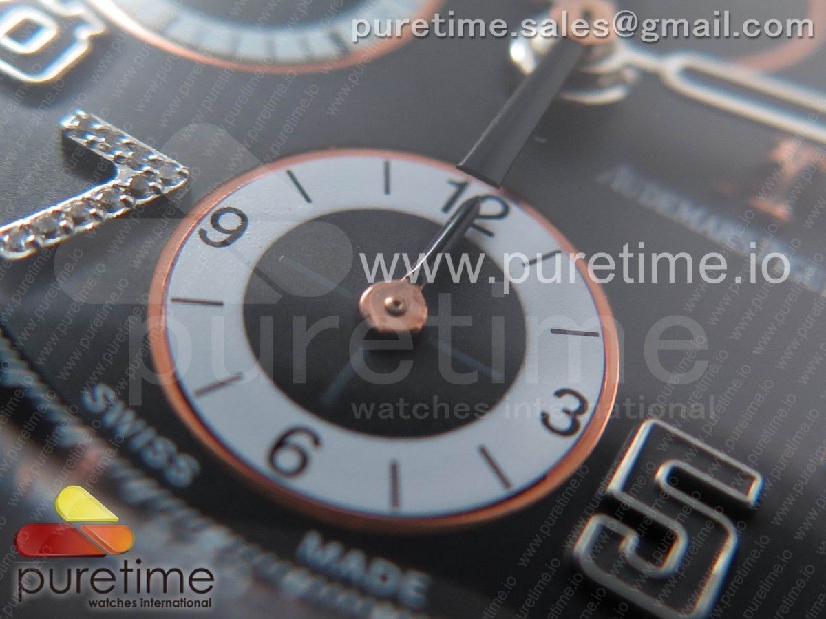 Movement Base Movement: 7750 automatic chronograph movement at 28800vph; Decoration: Platinum plated movement plate and rotor which are made according to the genuine movement, the best looking AP Calibre 3126 Movement Clone at the moment.