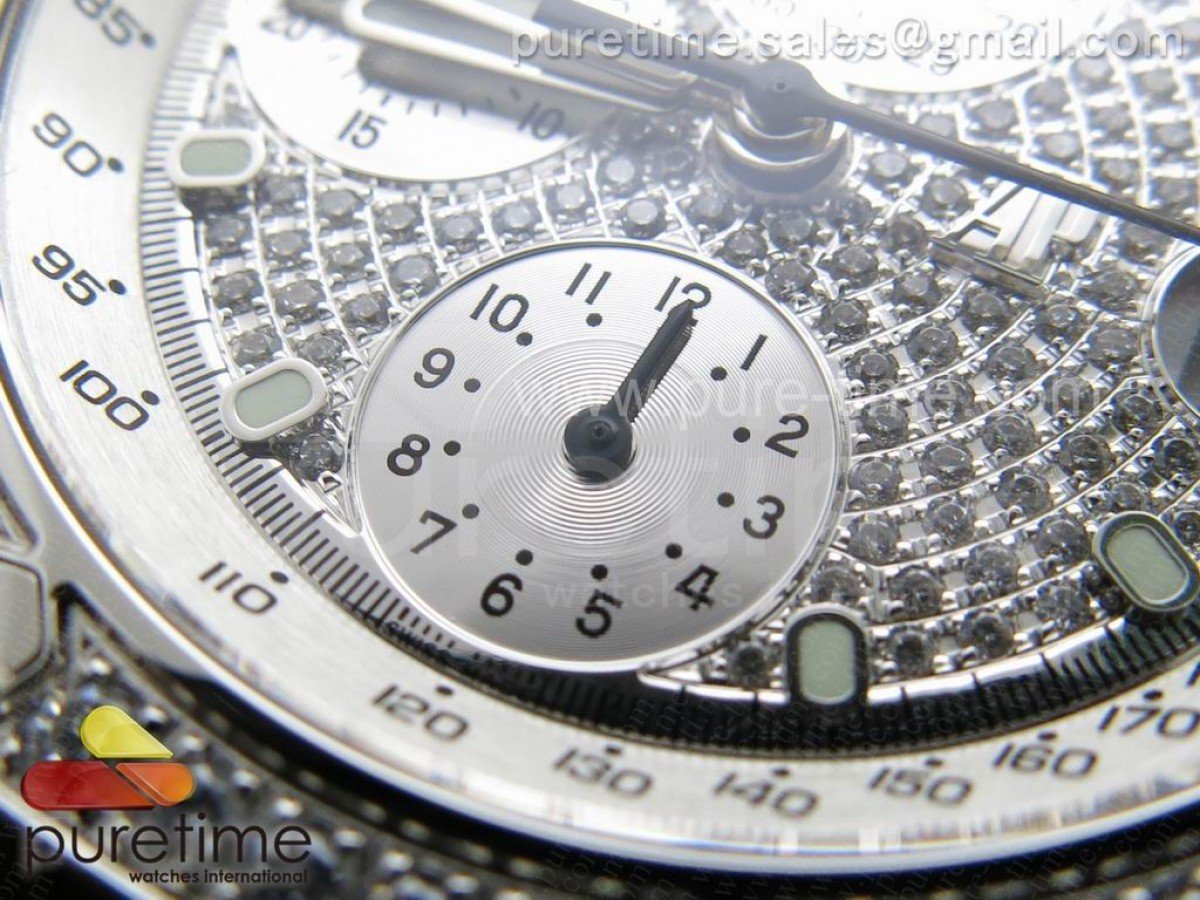 Movement 7750 25J Automatic Chronograph Movement with Silver Screws at 28800 vph with second at 12 and working regulator