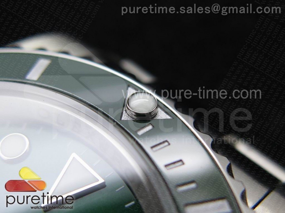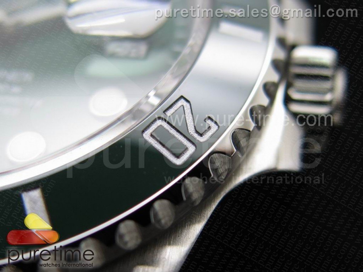 Bezel Uni-directional rotating green ceramic bezel with silver bezel markers same as genuine